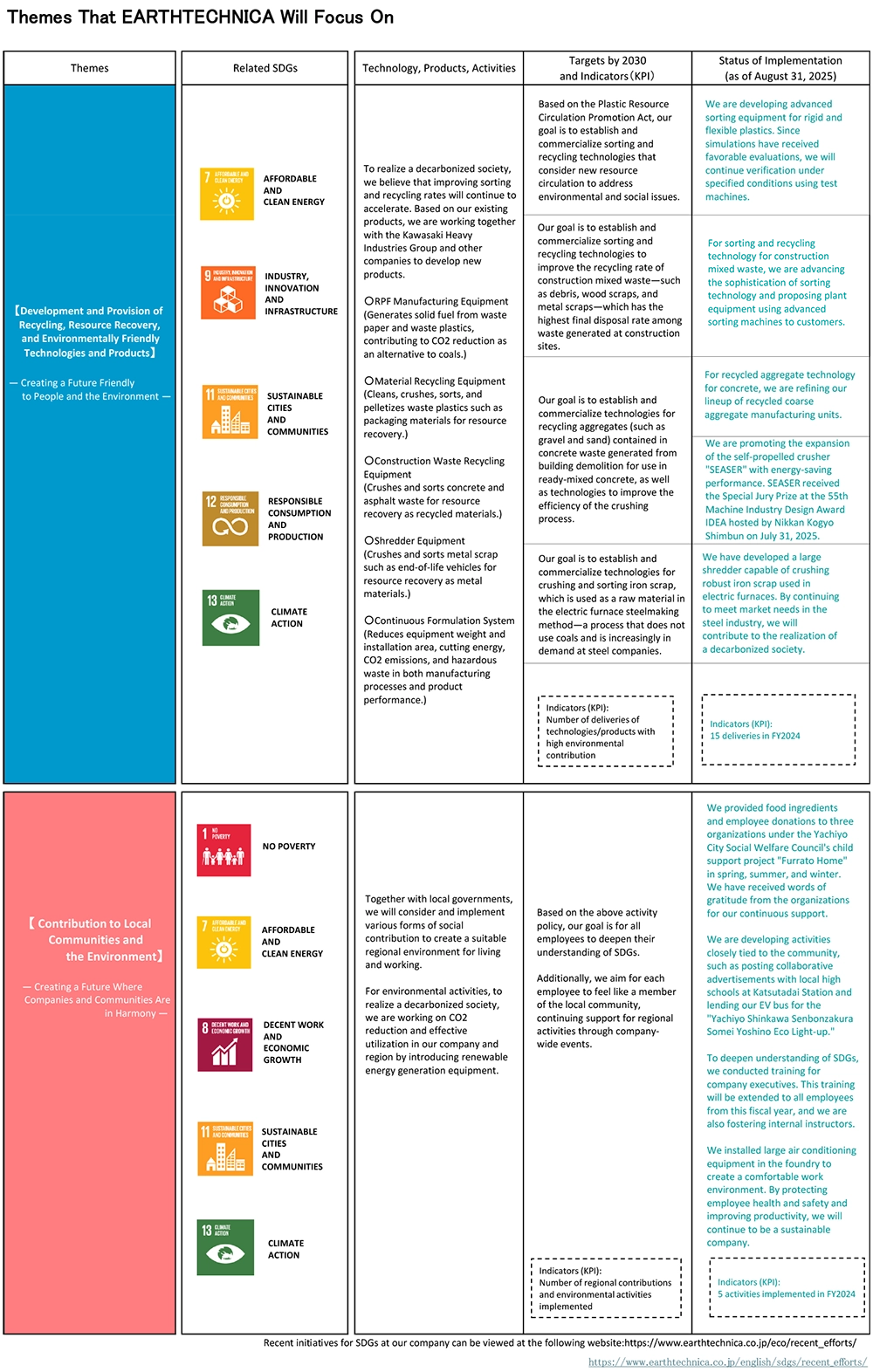 As illustrated by the above examples, our technology and products are highly compatible with the SDGs. We will continue to improve our existing products, while also developing new technologies and offering products to respond to societal demands such as achieving a decarbonized society and further improving recycle rates.