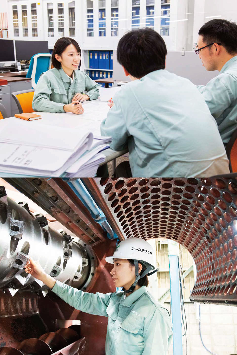 大型機械の開発・設計・製造を行う当社には機械系の方が多く入社していますが、なかには私のように他分野を専攻していた社員もいます。必要な知識は自分の意識や行動次第で入社後にいくらでも身につけることができます。少しでも興味があれば、ためらわずに入社を考えてみてください。