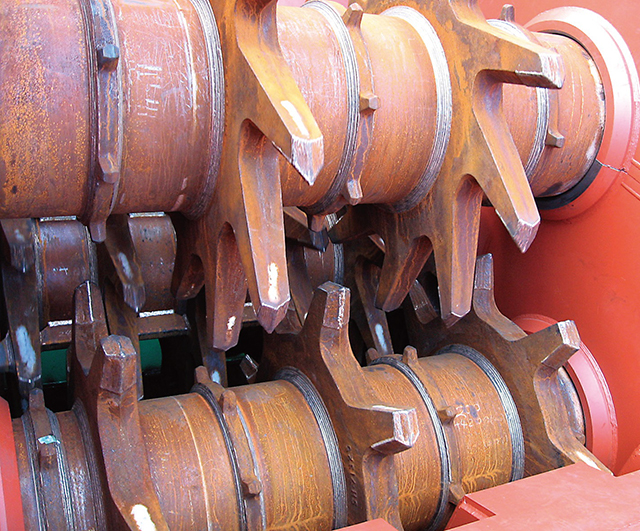 大きいものや高密度な処理物を粗破砕・解砕を行うことにより、均一なシュレッダ用原料を作り、シュレッダの処理能力増大とその小型化、省エネ化を図り、製品品質の安定化に貢献します。